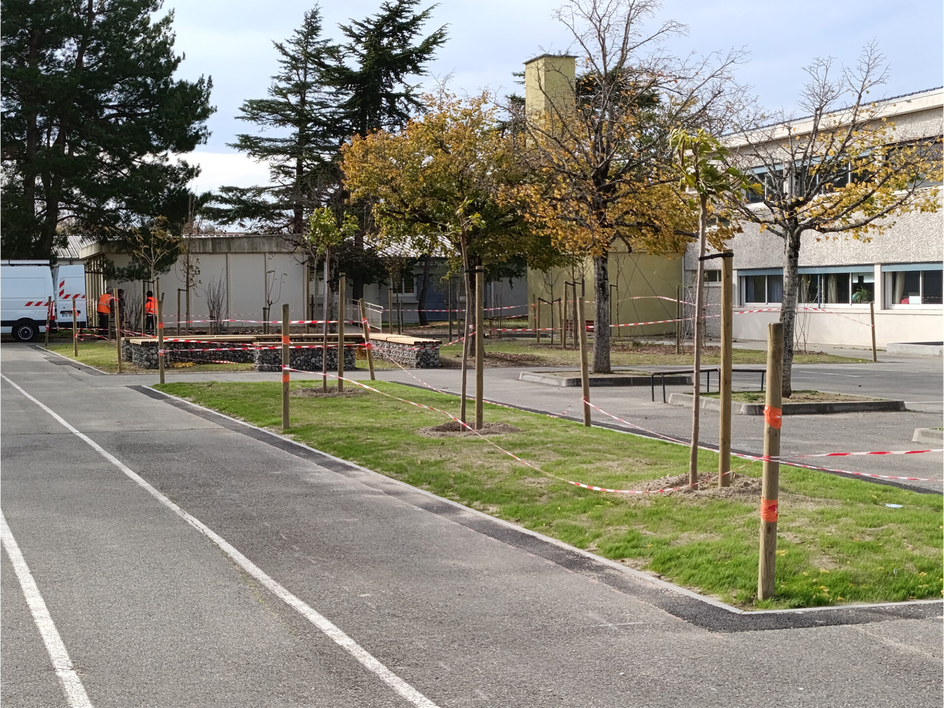 - plantation de 21 arbres et de pelouse ;